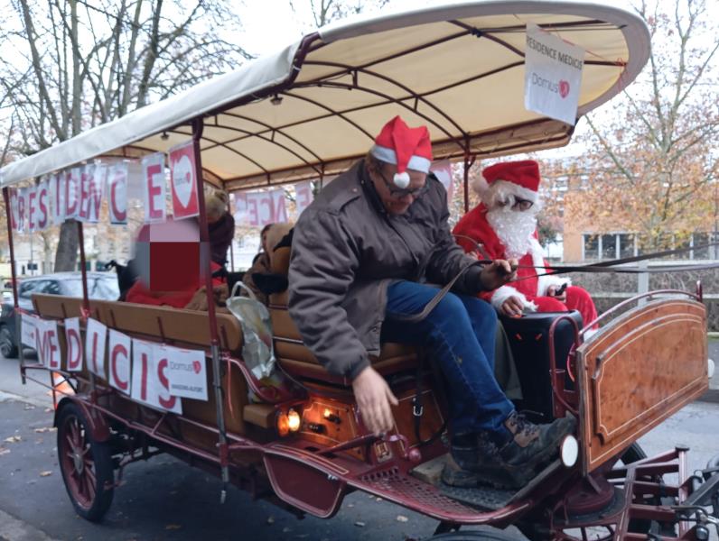 Pour l’occasion, la calèche avait été décorée aux couleurs de la résidence, et l’atmosphère était résolument festive. Bonnet de Noël sur la tête, les accompagnants ont contribué à créer un climat de bonne humeur, suscitant sourires et échanges tout au long du parcours. Les résidents, attentifs et ravis, ont pu redécouvrir leur environnement sous un angle différent, entre souvenirs partagés et instants de détente.